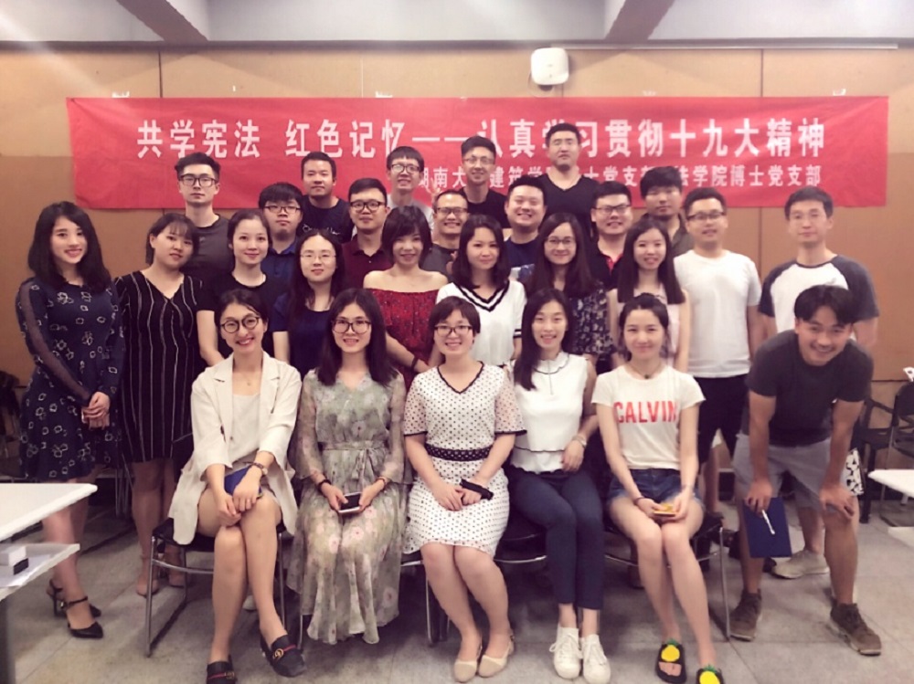 2016级博士研究生党支部书记柳婷婷,与建筑学院博士研究生党支部书记莫正玺、支委江曼和刘赛共同合作组织了本次活动,柳婷婷担任了现场的主持人。两个学院共计28名博士研究生党员,1名入党积极分子参加。