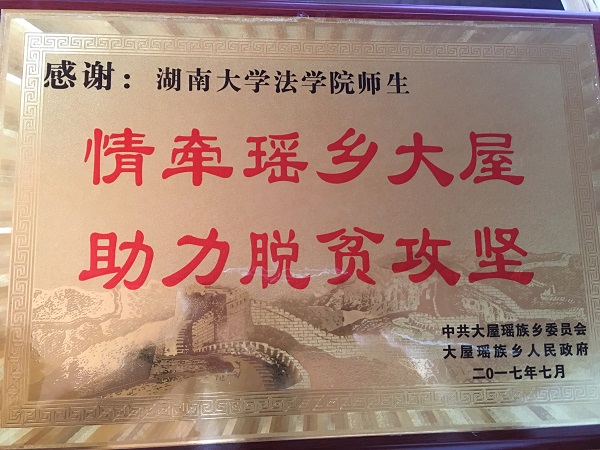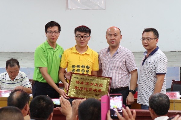 赠送“情牵瑶乡大屋,助力脱贫攻坚”的感谢牌,表达乡党委和政府对 海角社区