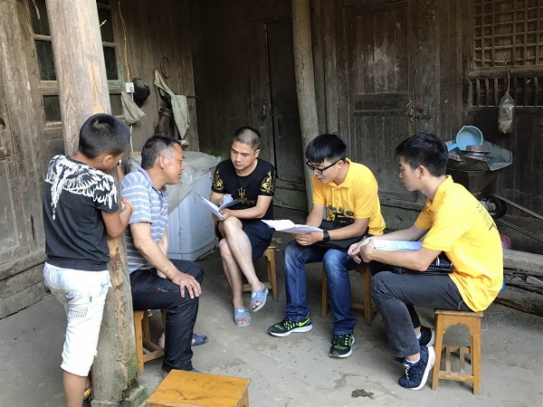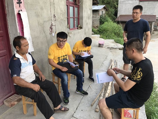 “情系脱贫攻坚”实践团第三组在邵阳市大屋瑶族乡开展调研活动,同学们在带队老师杨凯、夏航的带领下走访贫困户,并帮助当地完善精准扶贫档案和扶贫攻坚作战图。