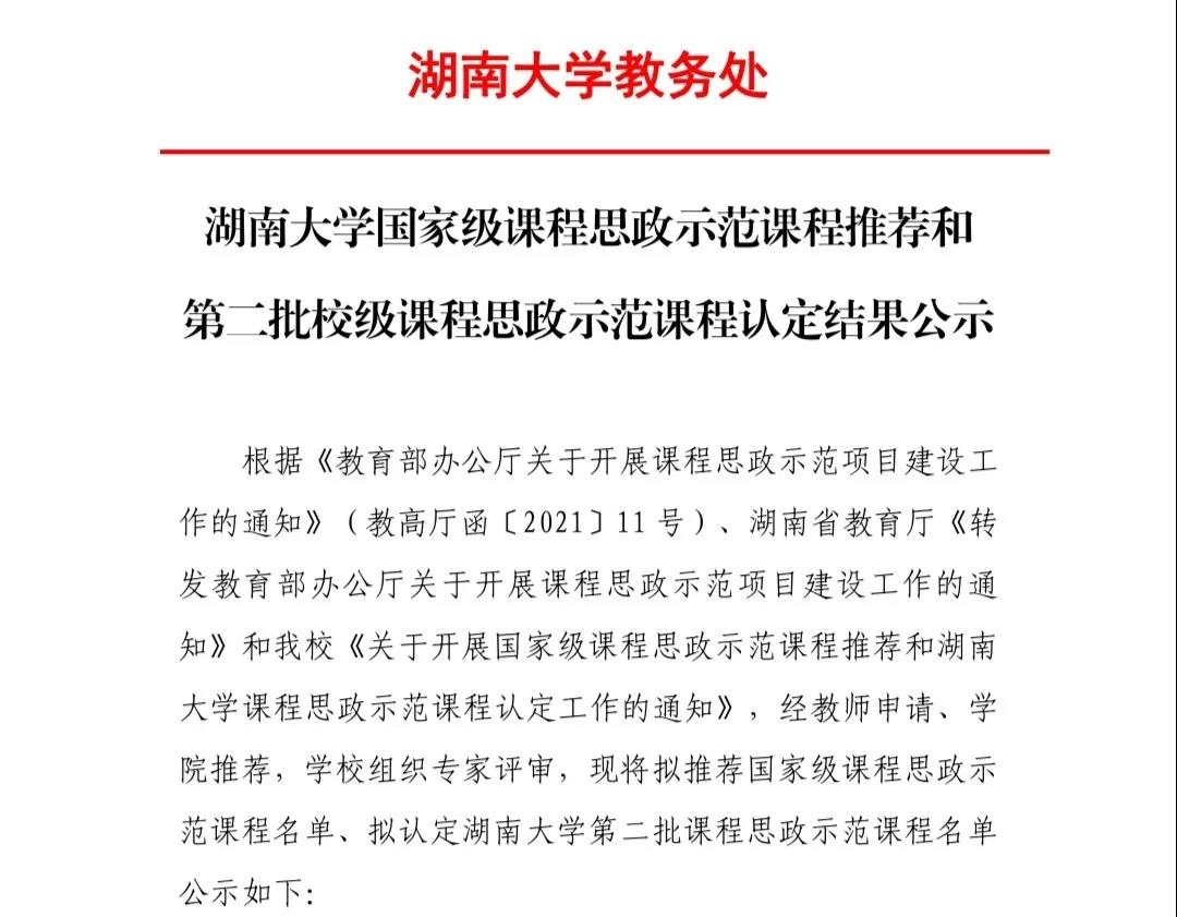 首届课程思政示范课程,并获评“湖南省最美公益普法个人”。课程将以习近平全面依法治国的相关论述和马克思主义法学理论为指导思想,在原有依法行政原则的内涵与外延的讲授中,对党中央、国务院关于全面依法治国、法治国家、法治政府和法治社会一体建设的相关文件展开全面介绍,便于学生把握政府为什么要依法行政,国家是如何推进法治国家、法治政府和法治社会一体建设,取得良好效果,为学院的课程思政建设有开拓之功。