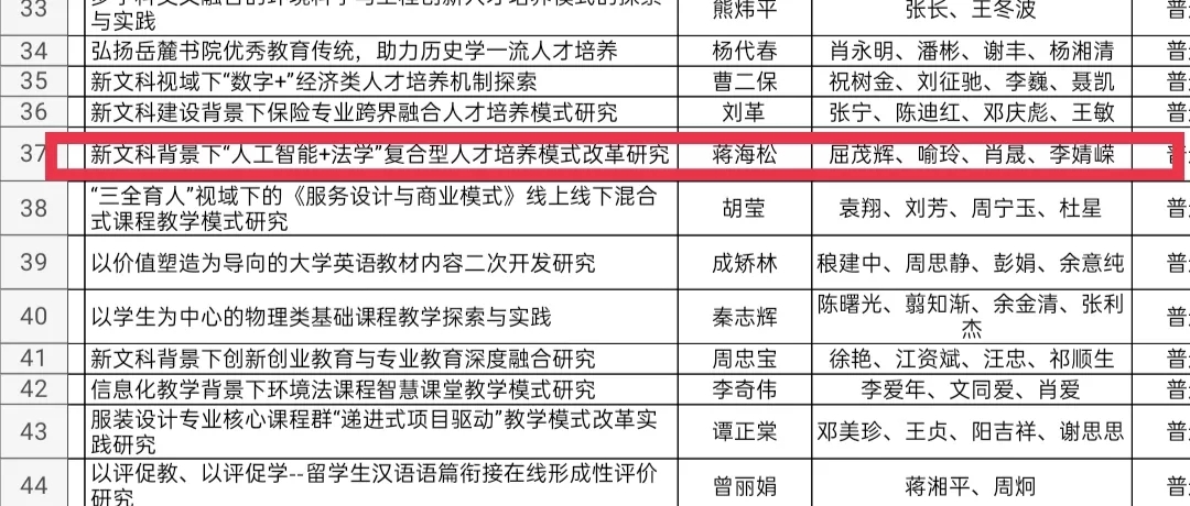 蒋海松副教授领衔申报的项目《新文科背景下“人工智能+法学”复合型人才培养模式改革研究》荣获重点项目立项。
