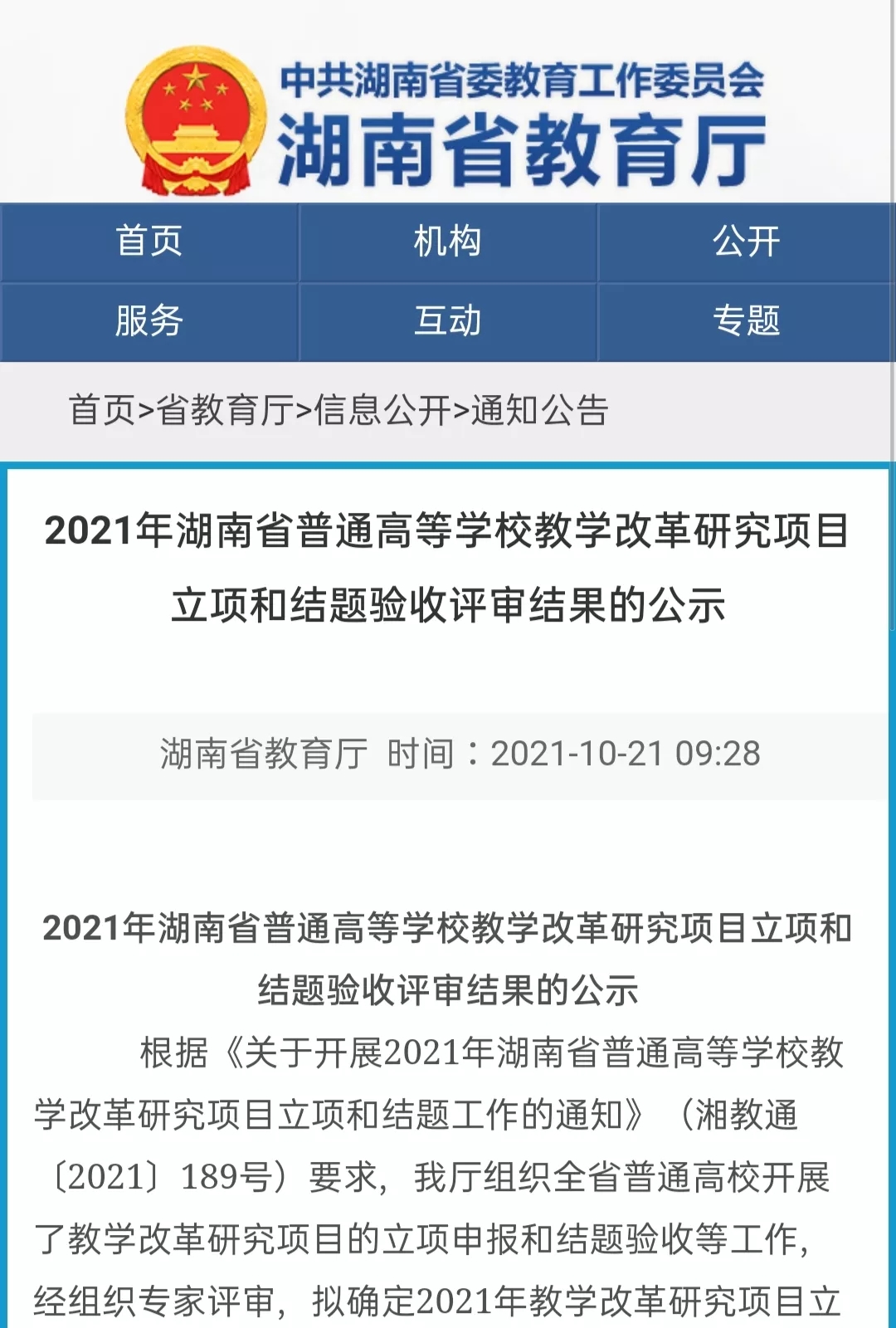 近日,湖南省教育厅公布了2021年湖南省高校教学改革研究项目立项名单。 海角社区