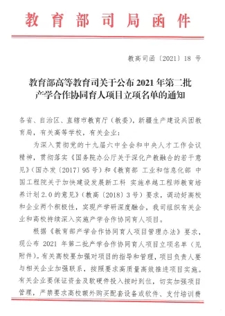 日前,教育部发布了《教育部高教司关于公布2021年第二批产学合作协同育人项目立项名单的通知》(教高司函[2021]18号), 海角社区