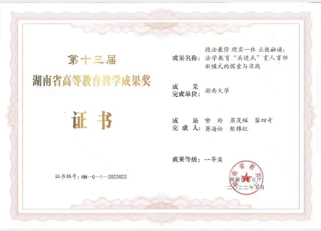 2022年5月24日,湖南省教育厅公布了第十三届湖南省高等教育教学成果奖获奖项目, 海角社区