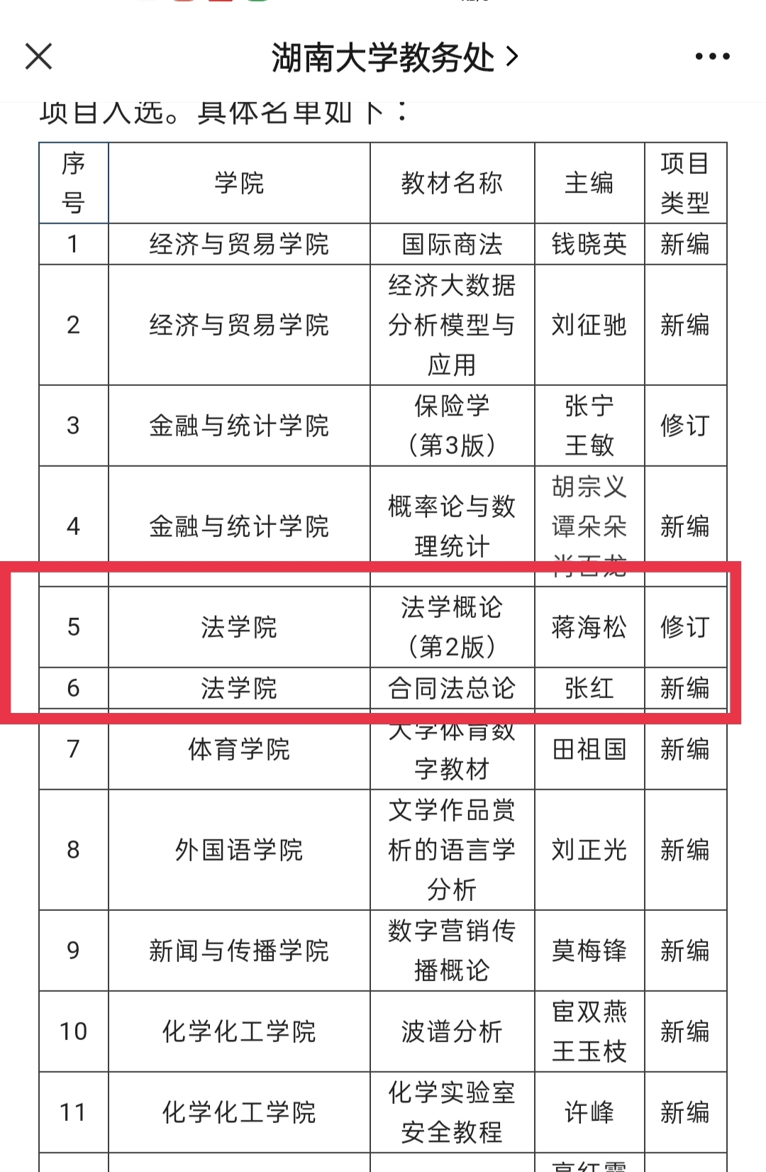 蒋海松主编《法学概论》(修订版)、张红主编《合同法总论》顺利入选。