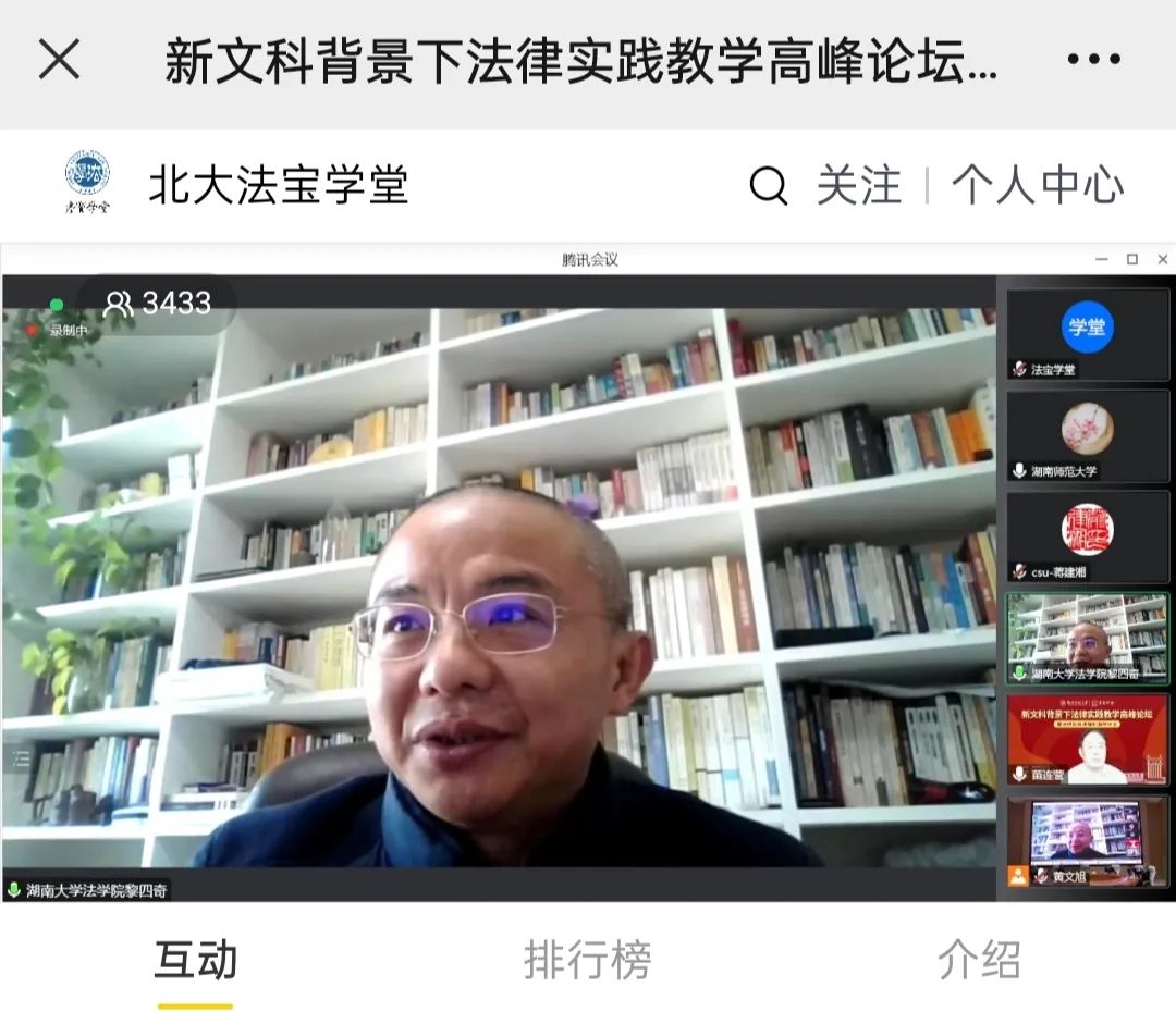 院长黎四奇教授就“新文科背景下法律实践教学暨法律实务课程标准”等相关主题参会与谈分享。 他介绍了 海角社区