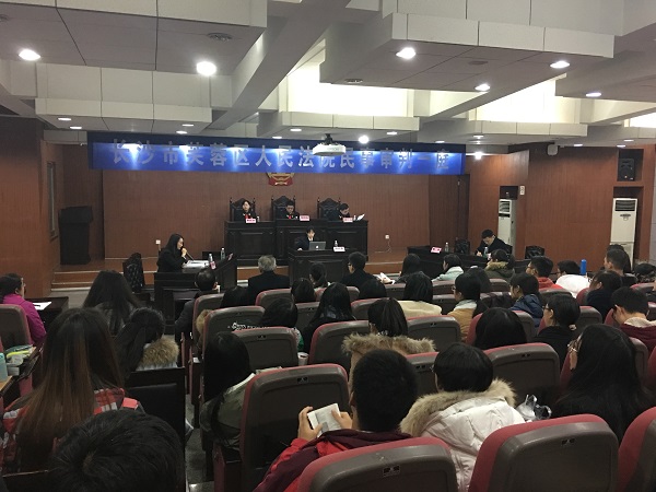 和长沙市芙蓉区人民法院合作将民事诉讼案件的庭审现场搬到了课堂,给法学专业的学生上了一堂别开生面的法学实践教育课。容纳150多人的模拟法庭座无虚席,过道里也坐满了学生。 海角社区