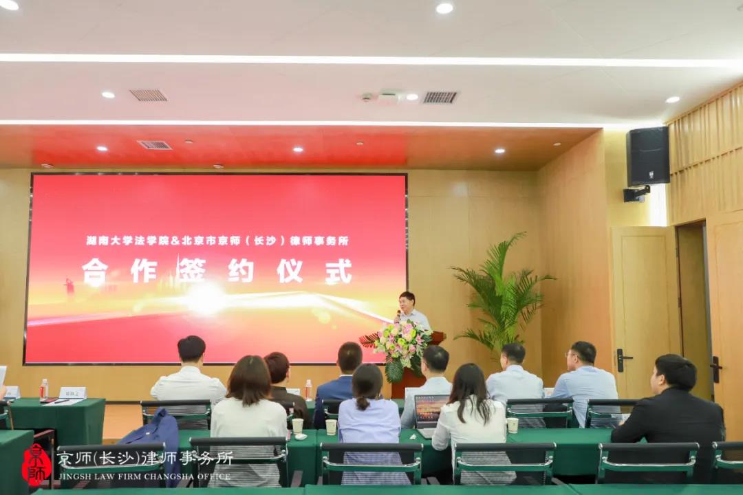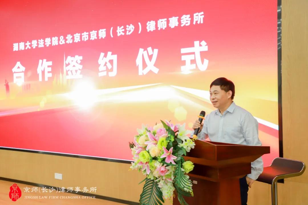 党委书记易骆之,副院长湛建云、副院长蒋海松,副处级组织员马启明出席签约仪式。本次签约仪式由北京市京师(长沙)律师事务所联合创始人王胜律师主持。