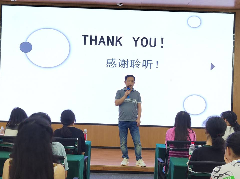 参观结束,师生们来到报告厅,活动进入第二个环节:经验分享会。