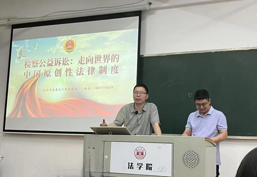任为检察官系统阐释了检察公益诉讼的理论框架与司法实务经验,结合亲历的典型案例深入剖析制度内核。通过理论体系构建与实务场景还原相结合的方式,为同学们带来一场兼具学术前瞻性与实践指导性的专业授课,旨在提升法学专业学生的实务应用能力,深化对中国特色公益诉讼制度的体系化认知。