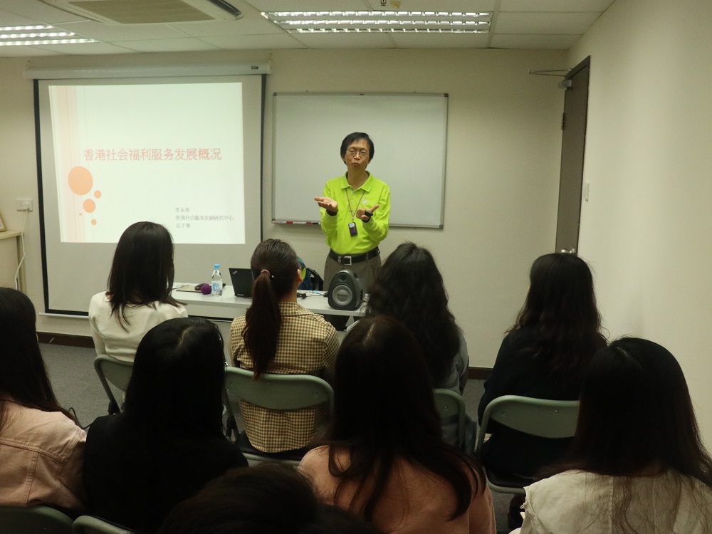 在香港社会服务发展研究中心,社研总干事李永伟先生与师生亲切交流。交流中,李总干事结合香港政府的政策实施现状,向同学们分享了对“一起同行,拥抱希望,分享快乐”的林郑政府社会治理新思维的理解。他指出,在新政府的施政报告中,政府的新角色是“促成者、推广者”,提出了一系列“以释放妇女劳动力”等为主的新福利政策,为香港社会发展注入了新动能。“我们要共同建设一个互相关怀的社会,使人人能自立、自主、自尊、自信、和谐共处、幸福快乐。这不只是政府的责任,也是大家的责任。政府和非政府机构在提供福利服务的过程中都要扮演好自己的角色。” 李总干事如是阐述香港社会工作者的理想使命。交流结束后,交流团向李永伟表示衷心感谢并合影留念,讲座在热烈的掌声中落下帷幕。