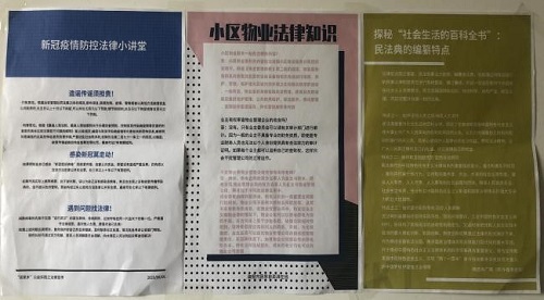 千里之行,始于足下。此次实践中,我主要负责为社区公众号撰写新闻稿、进行定期普法宣传以及协助社区工作人员开展人口普查的前期走访工作。由于负责工作的基础性,与群众零距离交流的过程中,我更加具体感知到了“为群众服务”这句话的深刻内涵。社区工作的开展对整个社会的发展具有直接影响,想把工作干好,首先就要摆正自己的位置。居民的事再小也是大事,基层工作者不能怕麻烦,必须把每一件事都做到让居民满意为止。