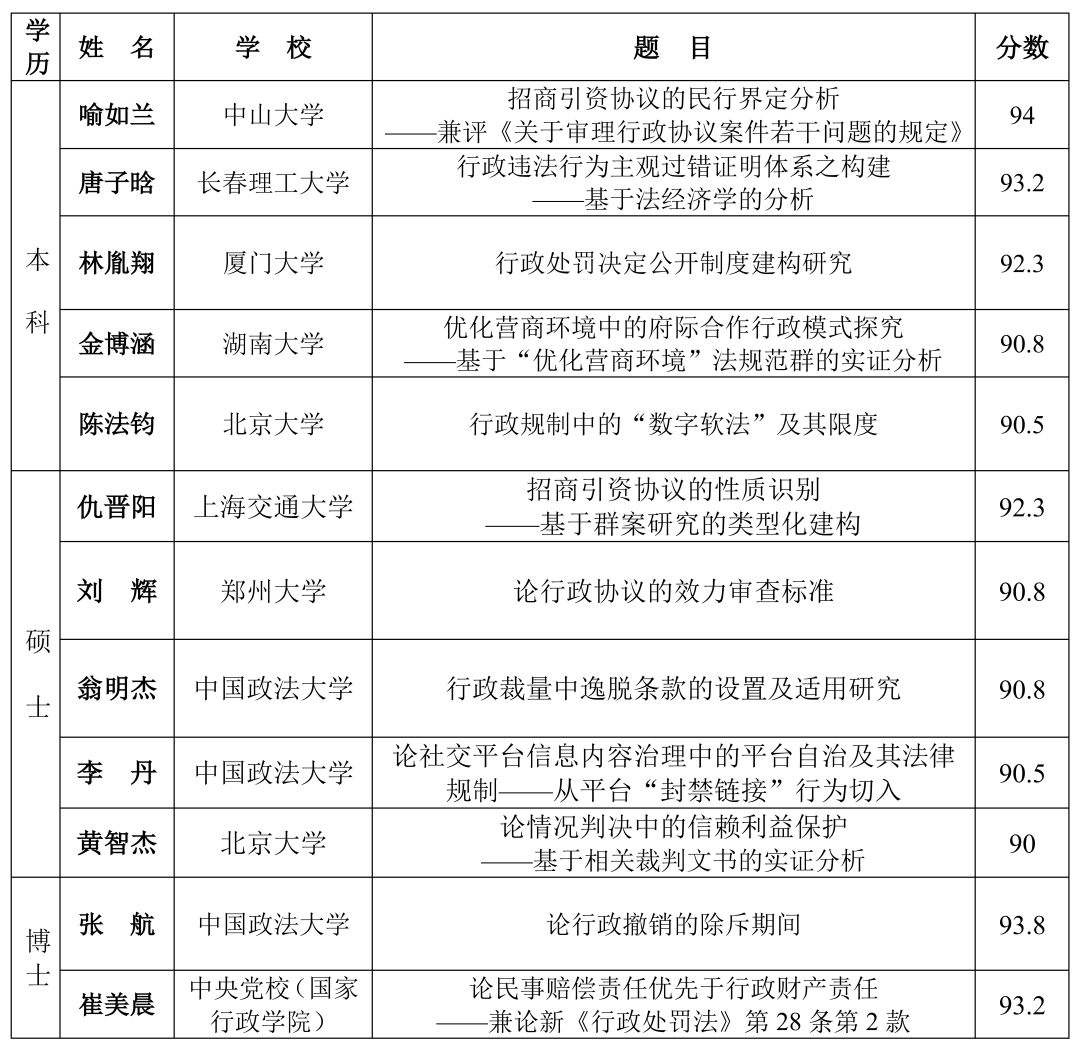 罗英老师指导的本科生金博涵入选该计划。经两组各3名专家评审打分,金博涵同学提交的《优化营商环境中的府际合作行政模式探究——基于“优化营商环境”法规范群的实证分析》以排名第4的成绩,与来自北京大学、中国政法大学、厦门大学、中山大学、中央党校(国家行政学院)等8所高校的12份作品一起入选。