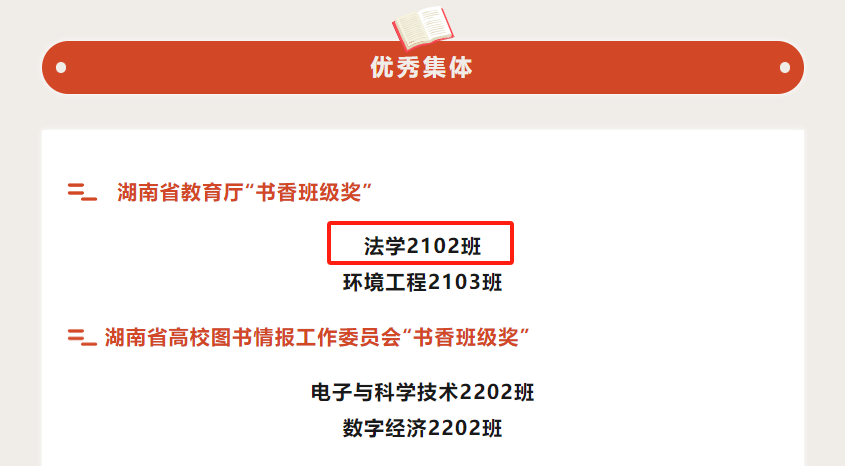 法学2102班在评选过程中,荣获湖南省教育厅“书香班级奖”。让我们一起看看“书香班级”的风采吧!