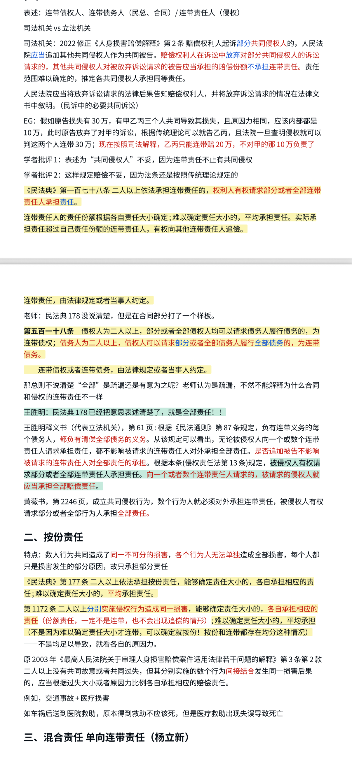龚境美:对于侵权责任法的笔记整理,我会分为课上手写笔记和课后幕布的电子笔记两部分:首先,对于课堂笔记,考虑到老师有时ppt播放较快,我倾向于用goodnotes等软件直接拍ppt,并在ppt上写下老师讲的补充内容;其次,对于课后笔记,我会将课堂拍的ppt和手写的内容整理到幕布上,形成电子文档,依托幕布支持文档与思维导图直接切换的功能,整理好知识体系和核心重点。