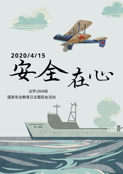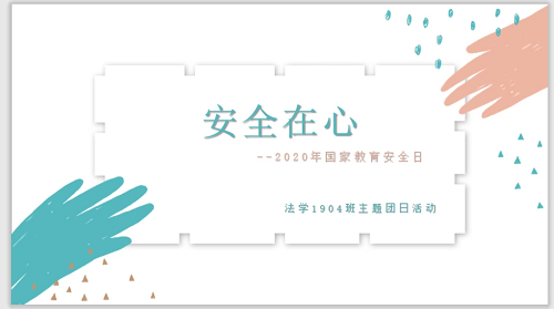 为深刻贯彻落实习近平总书记提出的“总体国家安全观”,深入推进爱国主义教育,进一步提高同学们的国家安全意识,增强国家安全责任,营造维护国家安全的浓厚法治氛围,在2020年国家安全日到来之际,法学1904班于4月14日下午开展“安全在心”主题班会活动。
