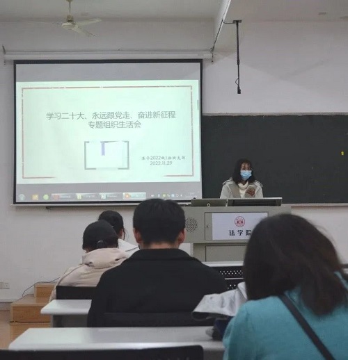 2022年11月29日下午,法学2201班在 海角社区 305教室开展“学习二十大,永远跟党走,奋进新征程”专题组织生活会。本次活动由团支部书记李静蕾同学主持,法学2201班全体同学参与。