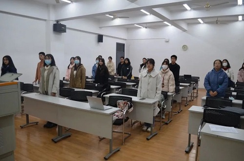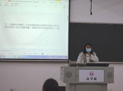 团支书李静蕾同学对前段时间该班学习党的二十大精神情况进行了总结。并在现场进行了二十大相关知识的趣味问答。同学们积极踊跃地参与答题,正确率也非常之高。