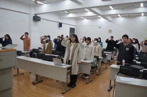 活动最后,全体同学高举右拳,重温入团誓词,鞭策自己勤奋学习,积极工作,为共产主义事业而奋斗!