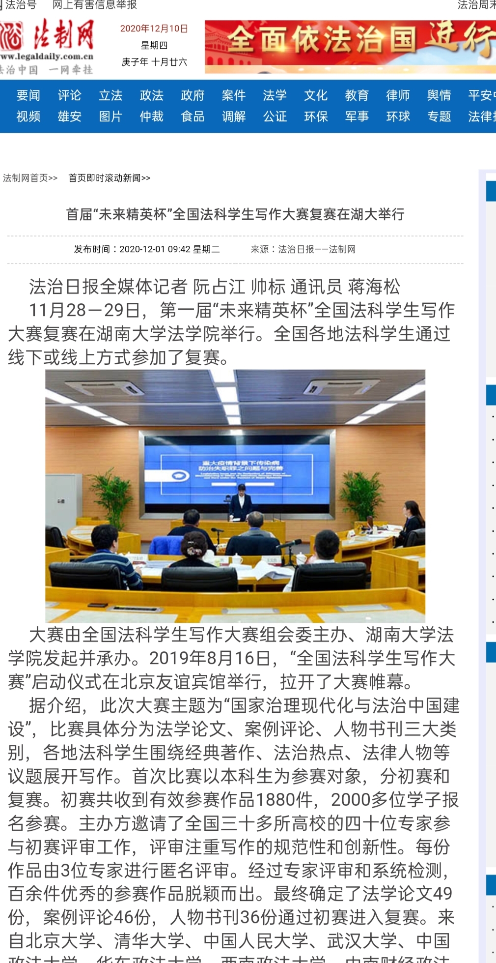 2020年11月28日至29日,首届“全国法科学生写作大赛”复赛在 海角社区