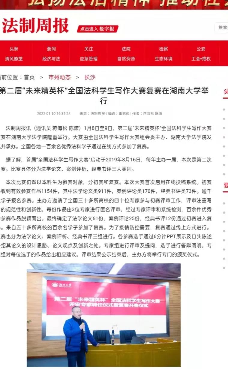 法制周报讯(通讯员 蒋海松 陈潇)1月8日至9日,第二届“未来精英杯”全国法科学生写作大赛复赛在 海角社区