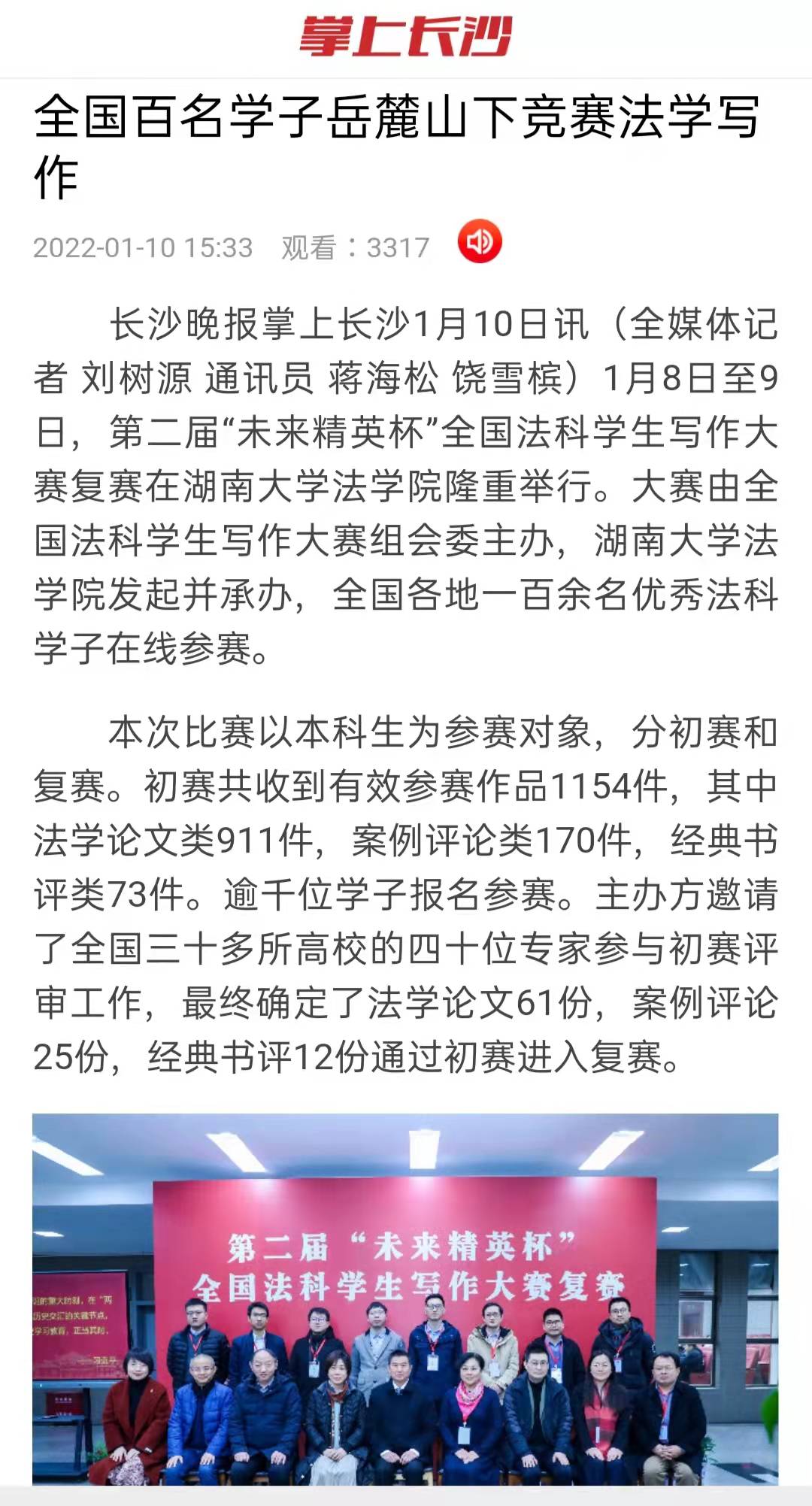 长沙晚报掌上长沙1月10日讯(全媒体记者 刘树源 通讯员 蒋海松 饶雪槟)1月8日至9日,第二届“未来精英杯”全国法科学生写作大赛复赛在 海角社区