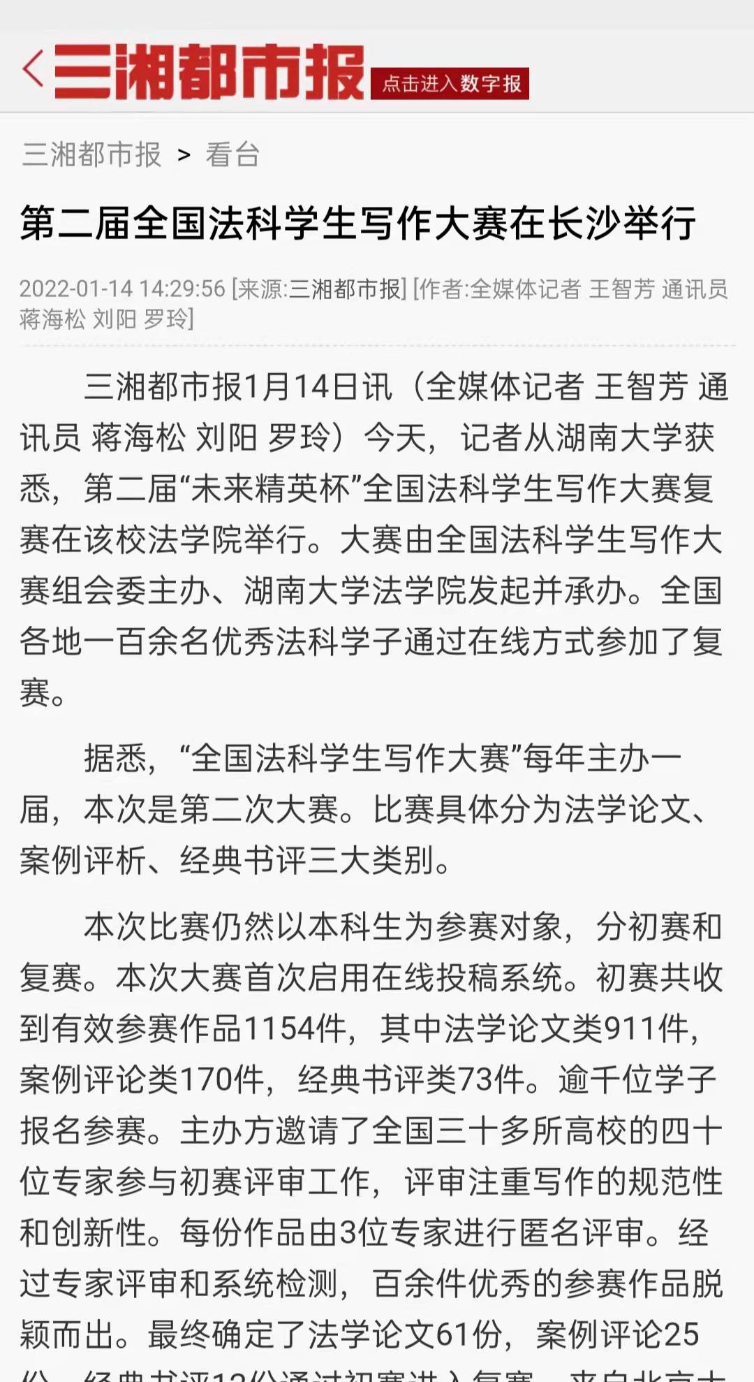 获悉,第二届“未来精英杯”全国法科学生写作大赛复赛在该校 海角社区