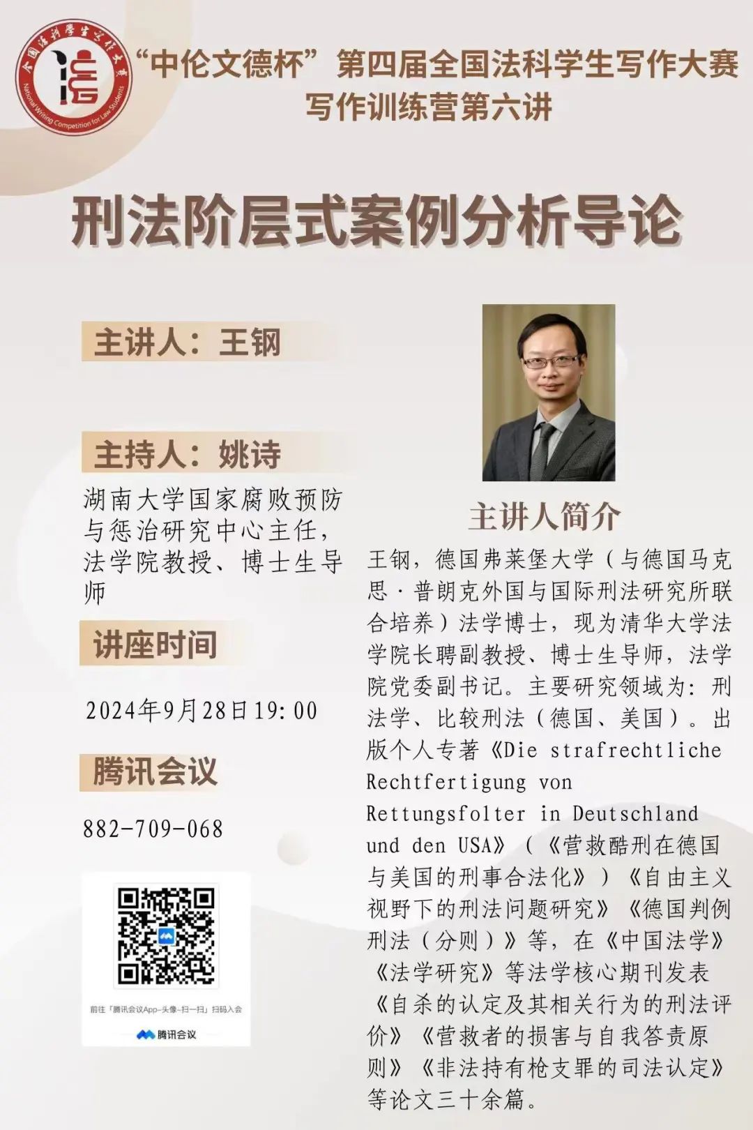 2024年9月28日晚,“中伦文德杯”第四届全国法科学生写作大赛训练营第六讲于线上顺利进行。清华大学 海角社区