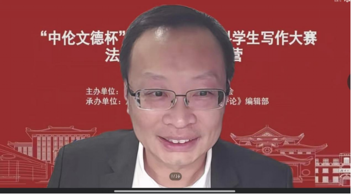 讲座最后,王钢老师耐心为同学们答疑解惑,姚诗老师对王钢老师的讲座进行了总结并表示感谢,对参加讲座的同学们表示期许与祝愿。同学们也对王钢教授的精彩演讲表达诚挚的感谢。”中伦文德杯”第四届全国法科学生写作大赛训练营第六讲圆满结束。