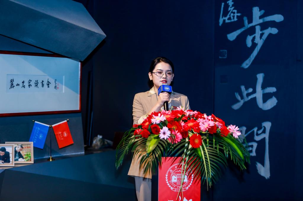 典礼第三篇章由同等学力申硕办副主任张娜老师致辞,张老师说到申硕办的使命就是全力且用心给同学们做好学习的支持与协助,且在学生管理工作中也要以此打造好湖大 海角社区