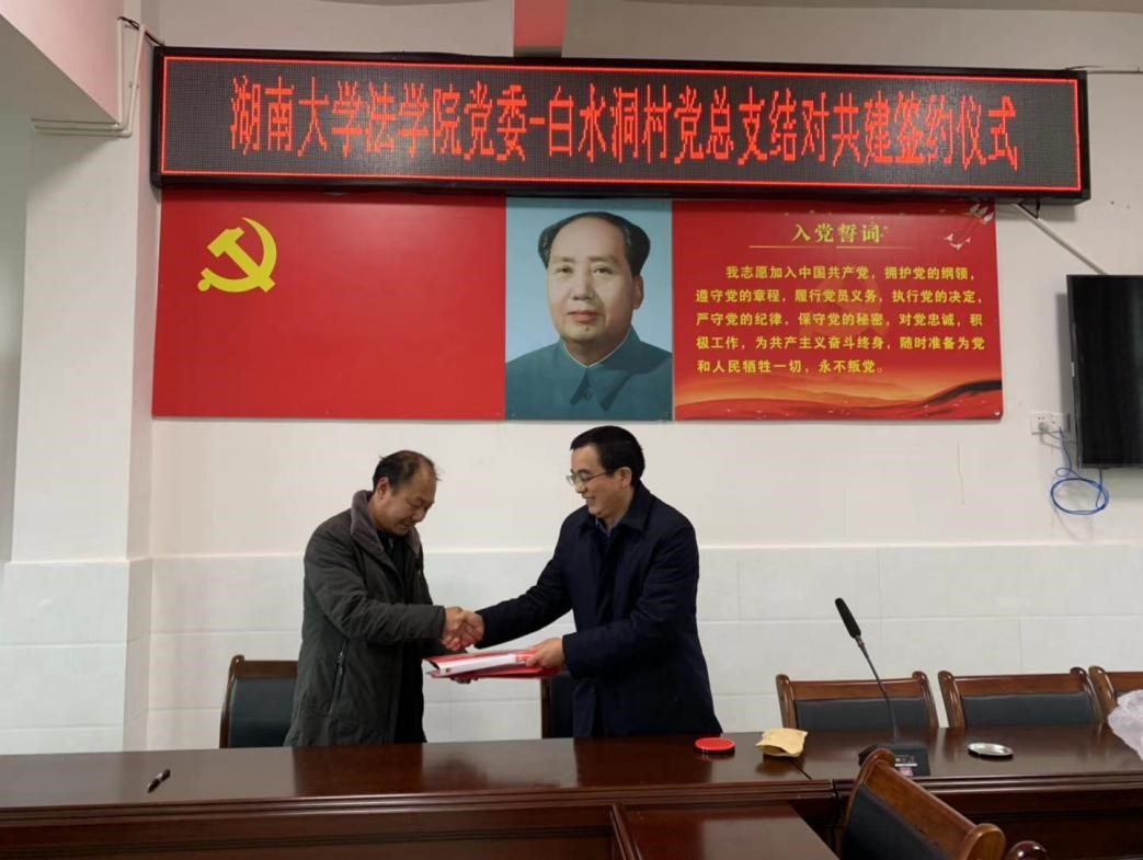 党委与隆回县白水洞村总支结对共建总体方案》,该方案分指导思想,基本原则,工作目标,活动项目、实施单位及参与对象,活动要求五个部分,系列活动包括法律学习宣传、普法进校园、提供法律咨询服务与法律援助、加强法治文化阵地建设四大板块十项活动,此行仅实施了部分活动,此后还将分阶段有序推进其他活动。