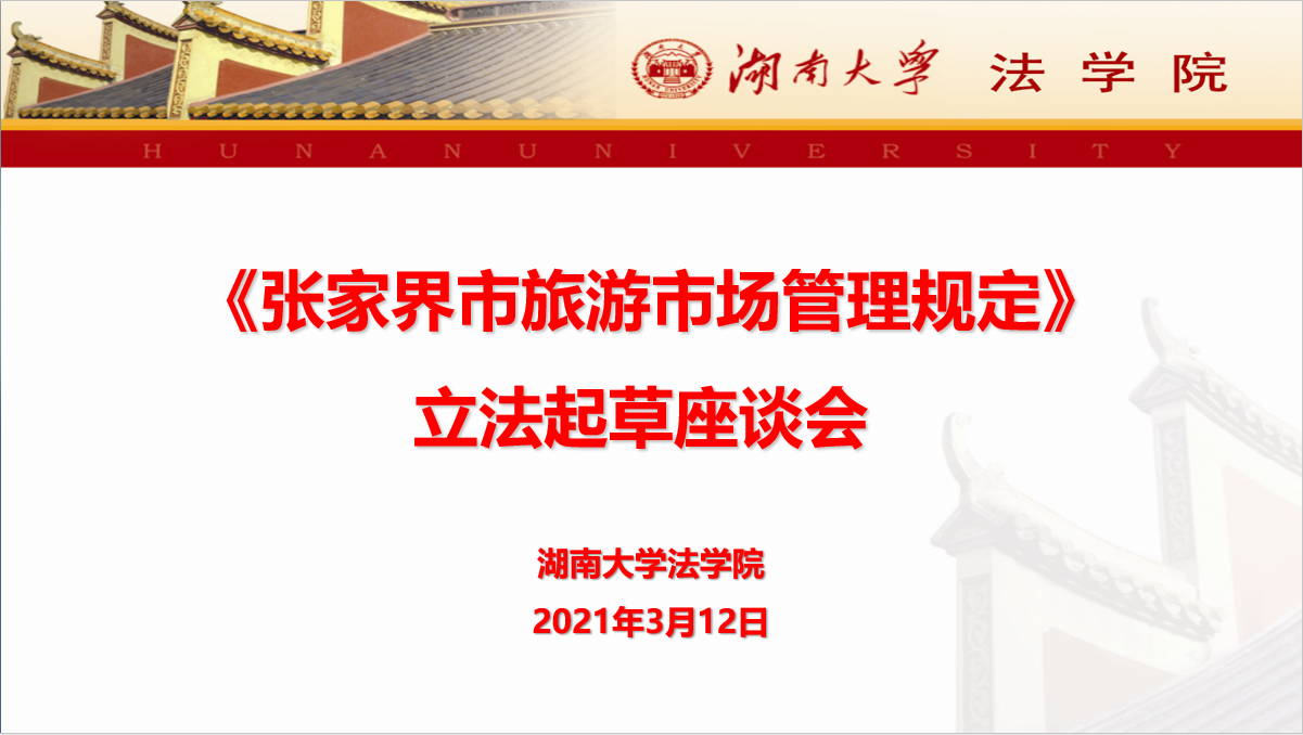 在405会议室举办《张家界市旅游市场管理规定》立法起草座谈会,张家界市人大、张家界市文化旅游广电体育局、湖大 海角社区