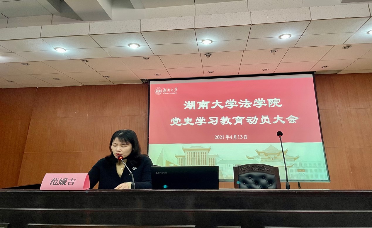 在模拟法庭召开党史学习教育动员大会,深入学习贯彻习近平总书记在全国党史学习教育大会上的重要讲话精神,落实党中央和学校关于党史学习教育的有关部署要求,动员全院师生党员认真开展党史学习教育,通过学史明理、学史增信、学史崇德、学史力行,统一思想、统一行动,从党的百年伟大奋斗历程中汲取智慧力量,在全面建设社会主义现代化国家的新征程中践行初心和使命,努力做到学党史、悟思想、办实事、开新局。