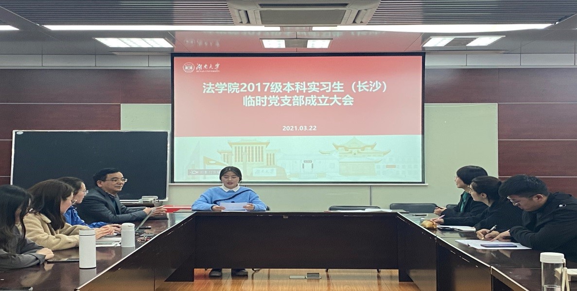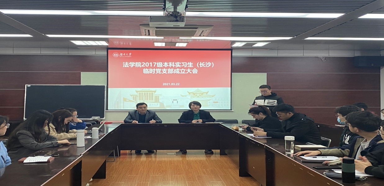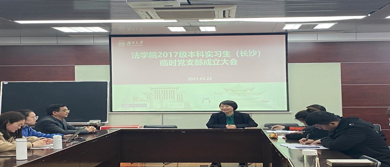 404会议室举行。会上,组织员马启明代表学院党委宣读了《关于成立2017级本科生实习临时党支部的通知》,长沙市中级人民法院实习生临时党支部、岳麓区人民法院实习生临时党支部、雨花区人民检察院实习生临时党支部、天心区人民法院实习生临时党支部四个实习生临时支部宣布成立。