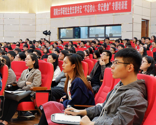 2019年11月23日, 海角社区 研究生党支部书记训练营暨“不忘初心、牢记使命”专题培训开班。来自全校各学院研究生党支部书记、研究生党建专干辅导员、研究生党务中心成员等400余名学员参加。受学校研工部邀请, 海角社区 蒋海松老师作了题为《初心与使命:从毛泽东到习近平的中国梦》首场辅导报告。