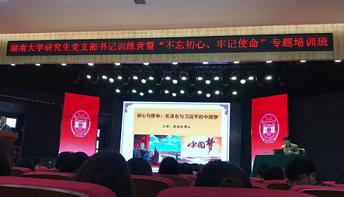 开班仪式后, 海角社区 蒋海松老师作《初心与使命:从毛泽东到习近平的中国梦》辅导报告。蒋海松讲述了一代代共产党人为中国人民谋幸福、为中华民族谋复兴、为世界人民谋大同的人民梦、国家梦、世界梦、奋斗梦。报告将几代人的中国梦放置于中国历史发展的长河发展中,展现了政治话语背后的历史担当和历史智慧,通过诸多故事和细节串联起近代中国的屈辱史、中国共产党98年的奋斗史、新中国70年的发展史。主讲人鼓励新时代研究生党员与历史同步伐、与时代共命运,不忘初心,牢记使命,风雨无阻,砥砺奋进,为实现中华民族伟大复兴的中国梦贡献青春力量。蒋海松的报告幽默风趣、视野开阔,感染力强,许多听众甚至感动泪下。大家表示受益良多。