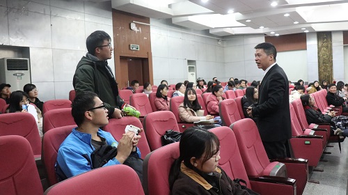 对于“贪”字的涵义,邓老师运用实际案例向同学们做出深刻的解读。“贪”字由“今”和“贝”构成,邓老师认为“今”意指当下,仅是刹那的瞬间。贪来的“贝”只在当下的一瞬为钱财,其最终将成为永远的罪证。邓老师用案例真切地揭示“巨贪”们失去的不仅是贪来的钱财更是宝贵的自由,甚至给亲人带来无法挽回之痛。他还介绍中央“有腐必反、有贪必肃”的反腐决心和我国“打虎”、“拍蝇”加“猎狐”多层次、全方位的反腐制度体系。
