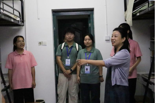 秋风送爽,丹桂飘香。为深入了解2025级新生的入学适应情况,引导新生尽快融入大学校园生活,营造安全、和谐、温馨的寝室氛围,9月10日傍晚,党委书记李劲松、院党委副书记兼纪委书记胡琼、副院长蒋海松、副院长王文胜、院长助理展鹏贺,2025级班主任林慰曾、张晓勇、袁崇霖、郑德群、林婧,以及2025级本科辅导员张丹深入新生寝室,开展查寝慰问工作。