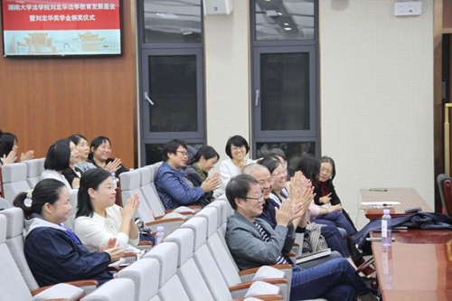 陈锦红老师作为获奖代表发言。她首先向设立刘定华法学教育发展基金的各位发起人和捐赠人表示感谢,并表达了获得这份荣誉的感激和对刘定华老师的敬意,刘老师在法学教育事业上的矢志不渝,一直是后辈们前行的灯塔和标杆。陈老师表示因为热爱选择了讲台,在法学教育事业上的付出与38年的教师生涯成就了自己一生是湖大法学人,她坚信教育是点燃希望的事业,值得自己奋斗终身。她最后表达,对于 海角社区