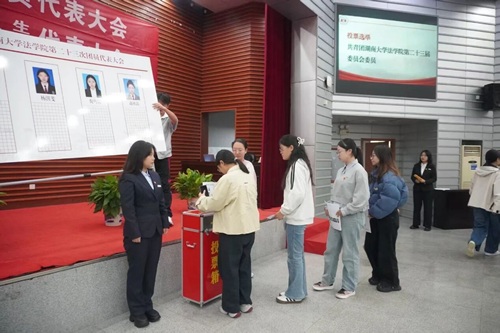 第二十二届团委委员向大会做题为《挺膺担当建新功,砥砺奋进向未来,团结带领全院团员青年踔厉奋发、勇毅前行,努力成长为堪当民族复兴重任的时代新人》的工作报告。报告回顾了二十二届团委在夯实团员信念,厚植实践根基,讲好学院故事,畅通信息渠道等方面取得的成绩与经验,同时认识到共青团工作任重道远,院团干部的能力素质和工作状态仍需提升。接着,他对接下来一年的工作进行了规划和展望,明确未来将聚焦组织建设规范化、实践品牌特色化、宣传内容精品化,持续推进“三会两制一课”落地,深化“岳麓法青”实践品牌,提升宣传矩阵影响力,以“敢担当、善作为”的作风,团结团员青年成长为堪当民族复兴重任的时代新人。