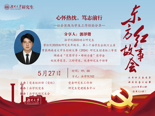 2023级硕士研究生郭泽锴分享社会实践与学生工作经验,欢迎各位同学前来参与交流讨论!