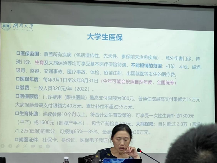 进入第二个环节,尹老师讲解了有关大学生医保的注意事项,力求让每位同学都能正确使用大学生医保,切实保障学生利益。