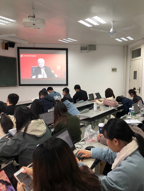 全体研究生新生和其他师生代表齐聚在北校区水教503和507教室,通过网络直播观看“2020年全国科学道德和学风建设宣讲教育报告会暨宣传月启动仪式”,深入学习贯彻习近平新时代中国特色社会主义思想和党的十九届五中全会精神,弘扬科学家精神,加强作风和学风建设,深入推进科学道德和学风建设宣讲教育工作。