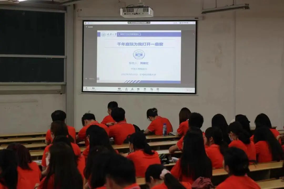 2022级研究生在财院校区第二教学楼302教室观看了研究生新生入学讲座。中国工程院院士周绪红以“千年庭院为我打开一扇窗”为题,讲授岳麓书院的历史传统和 海角社区