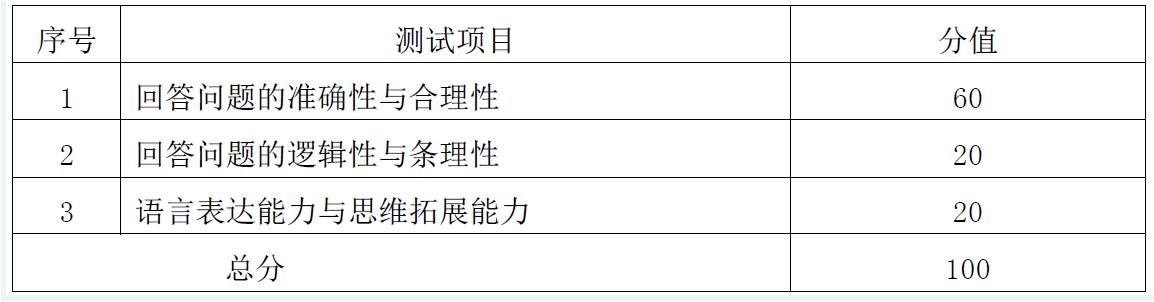 主要考核考生对本学科专业知识和应用技能的掌握程度,共100 分。专业测试实行题库随机抽题,每人限抽三题,可选择其中二题作答。