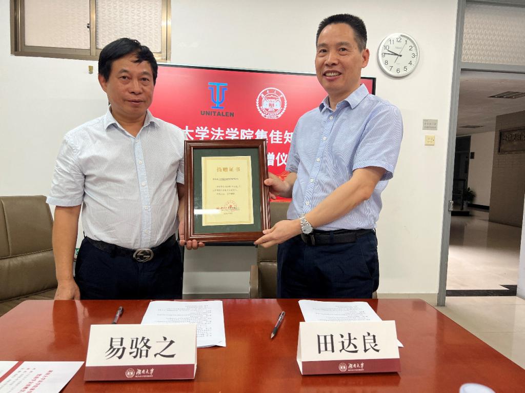 (田达良先生与易骆之书记签署捐赠协议,颁发捐赠证书)