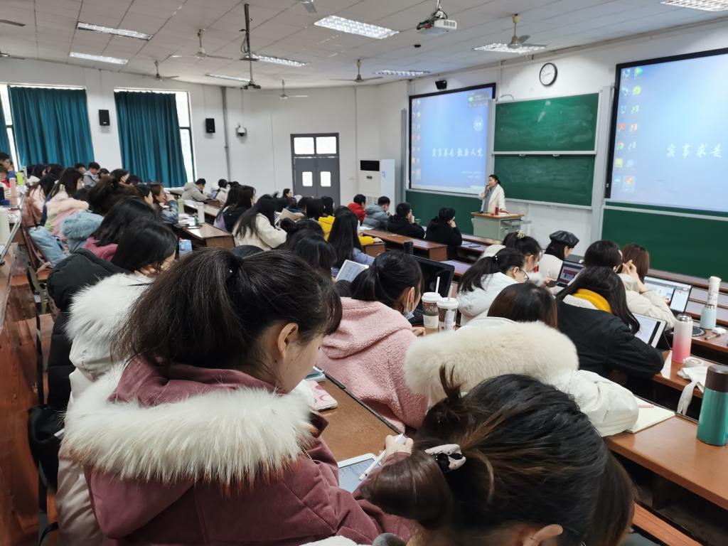在“法官的责任担当”这一部分,杨立辉法官结合自己元旦佳节辛苦工作的真实经历以及在执行、审判过程中所遇到的各类案例,向同学们阐述了法官的责任担当,现场向同学们展示了2021年元旦夜岳麓区人民法院法官加班的照片,并且向同学们分享了她在进行执行信访工作时的经历,表现出强烈的责任感和使命感。