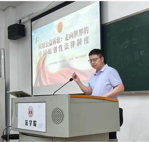 任为检察官系统阐释了检察公益诉讼的理论框架与司法实务经验,结合亲历的典型案例深入剖析制度内核。通过理论体系构建与实务场景还原相结合的方式,为同学们带来一场兼具学术前瞻性与实践指导性的专业授课,旨在提升法学专业学生的实务应用能力,深化对中国特色公益诉讼制度的体系化认知。