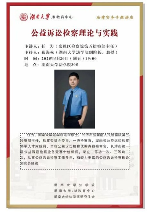 304教室举行。岳麓区人民检察院第五检察部主任任为担应邀回母校开讲《检察公益诉讼:走向世界的中国原创法律制度》 。讲座由 海角社区