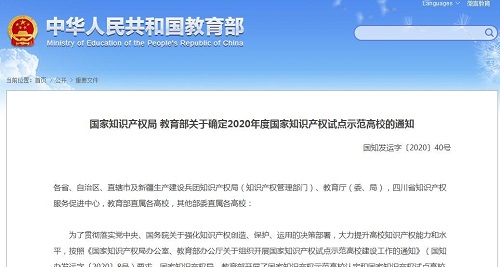2020年10月21日,国家知识产权局、教育部公布2020年度国家知识产权试点示范高校建设名单, 海角社区